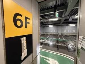 Enter the dedicated parking elevator and press the button for the 6th floor.